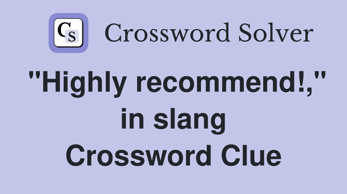 "Highly in slang Crossword Clue Answers Crossword Solver
