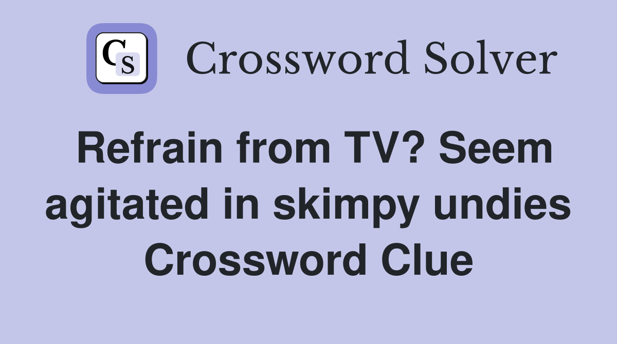 Refrain from TV? Seem agitated in skimpy undies Crossword Clue