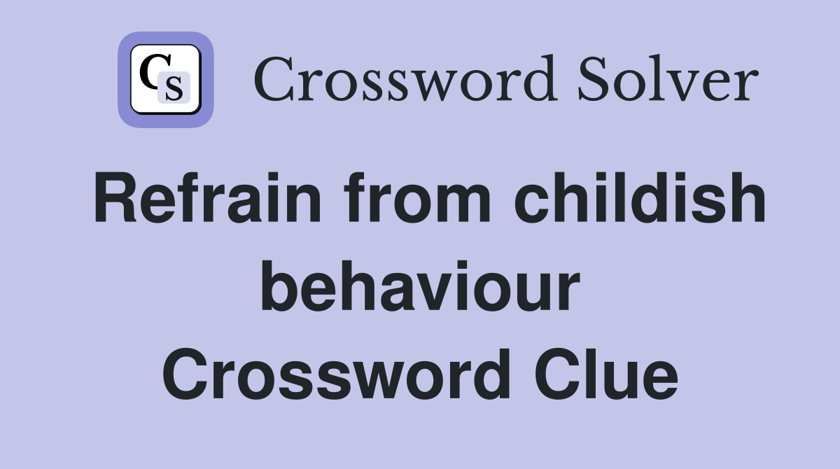 Refrain from childish behaviour Crossword Clue Answers Crossword Solver