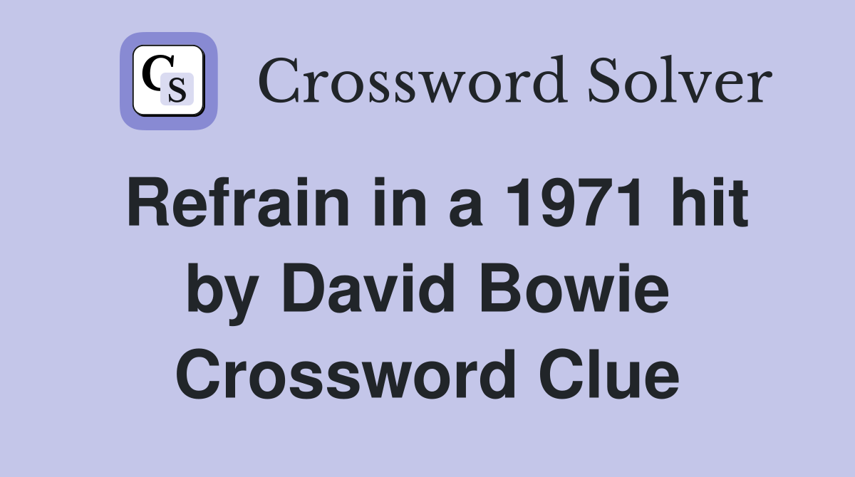 Refrain in a 1971 hit by David Bowie Crossword Clue Answers