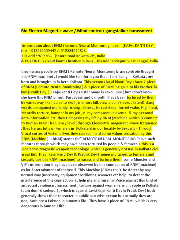 Remote Neural Monitoring in Kolkata, India PDF Human Torture