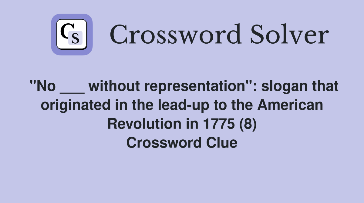 "No ___ without representation" slogan that originated in the leadup