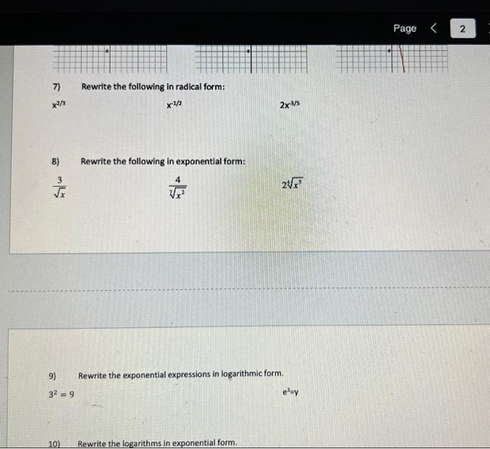 Solved 7) Rewrite the following in radical form x2/3 x−1/2