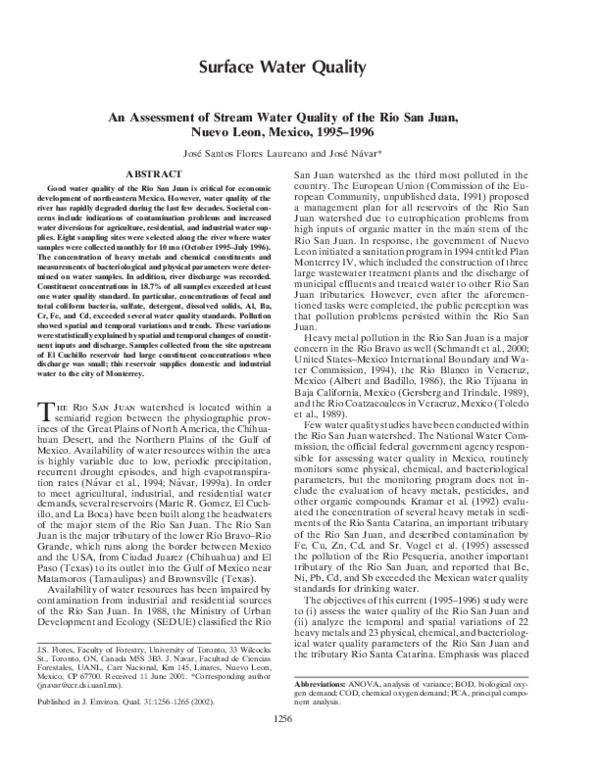 (PDF) An Assessment of Stream Water Quality of the Rio San Juan, Nuevo