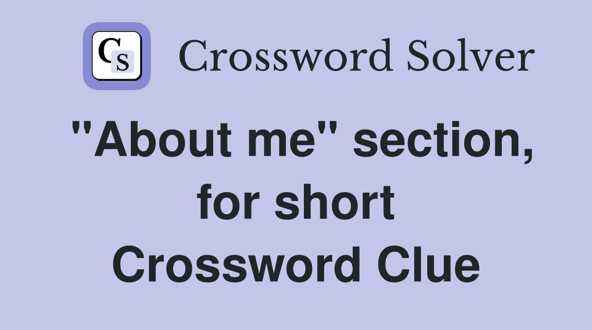 "About me" section, for short Crossword Clue Answers Crossword Solver