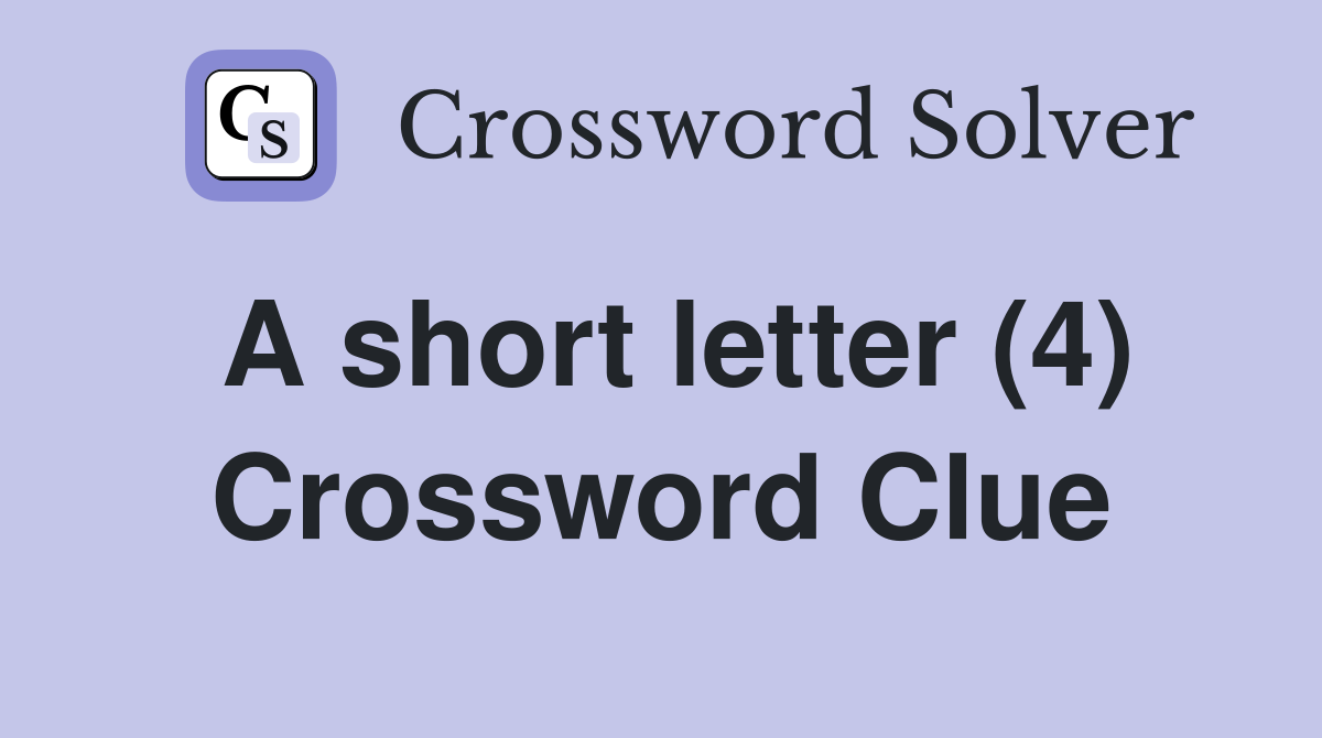 A short letter (4) Crossword Clue Answers Crossword Solver
