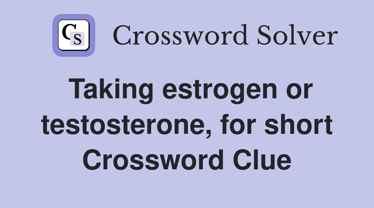 Taking estrogen or testosterone, for short Crossword Clue Answers