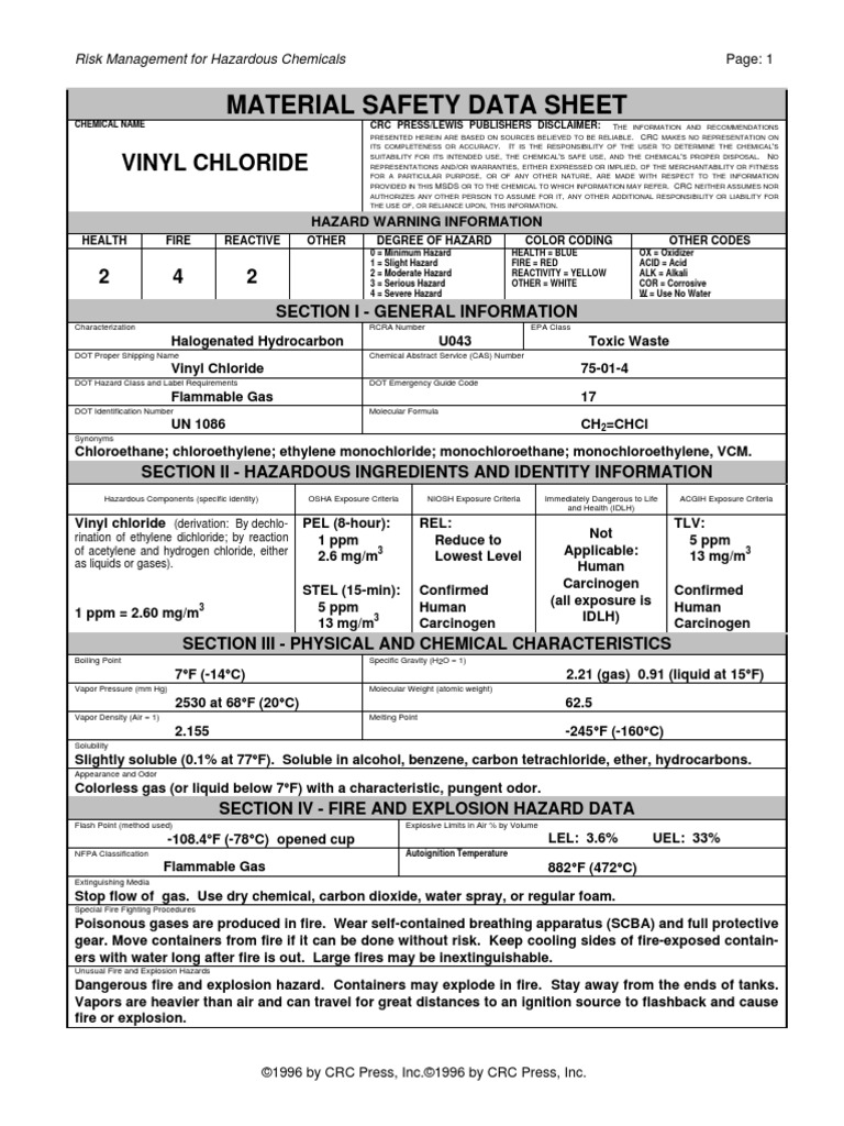 Safety data sheet vinyl chloride, stabilized issue date: Chemical product and company identification 2. Identification of the substance/mixture and of. Consult a physician and show this safety data sheet. If breathed in, move person to fresh air.