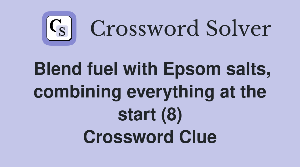 Blend fuel with Epsom salts, combining everything at the start (8