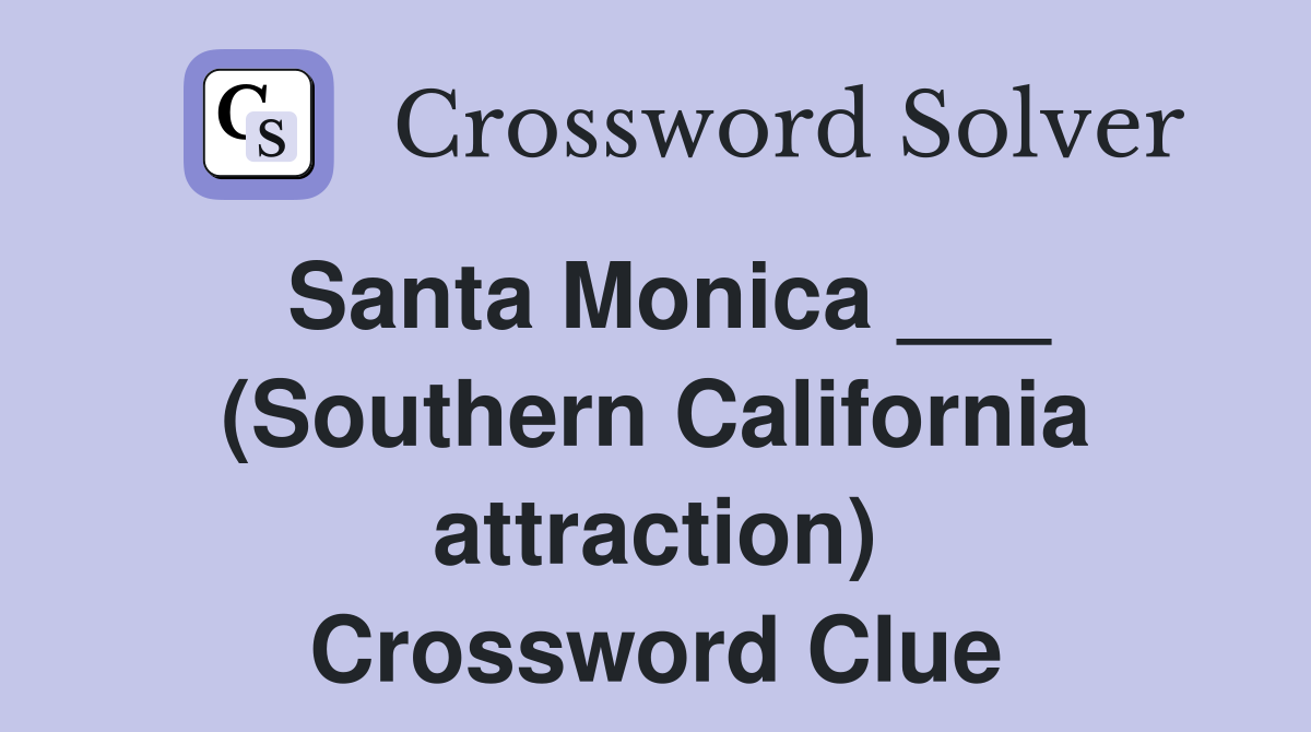 Here is the answer for the: We have got the solution for the santa monica landmark crossword clue right here. The crossword solver finds answers to classic. This particular clue, with just 4 letters, was. While searching our database we found 1 possible solution for the: