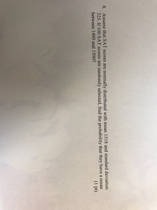 Scores On The Sat Test Have A Mean Of 1518 - Scores on the act test have a mean of 21.1 and a. The mean sat score is 1518, which means a score of 1190 is below the mean. Scores on the sat test are normally distributed with a mean of 1518 and a standard deviation of 325. Choice a claims that an act score of 17 is relatively better than an sat score of 1490. Scores on the act test have a mean of 21.1 and a standard deviation of. Scores on the act test are normally. Scores on the sat test have a mean of 1518 and a standard deviation of 325. Scores on the sat test have a mean of 1518 and a standard deviation of 325. Assume that sat scores are normally distributed with mean = 1518 and standard deviation = 325. For sat scores, we have a mean μ = 1518 and a standard deviation σ = 325.