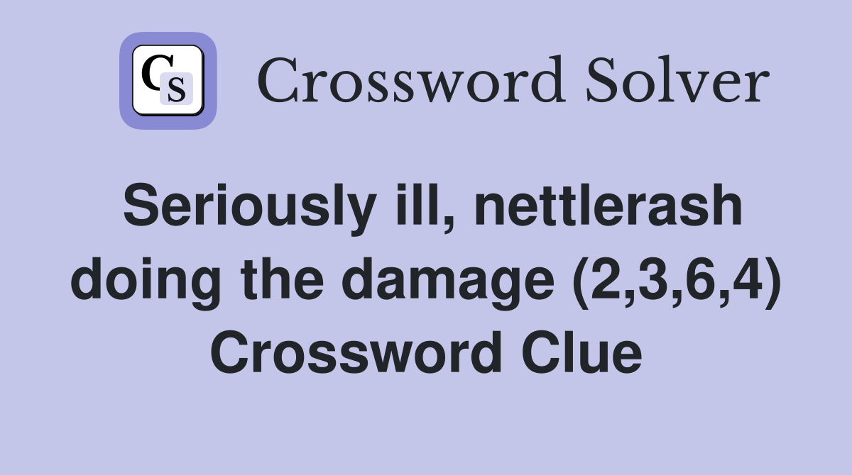 Seriously ill, nettlerash doing the damage (2,3,6,4) Crossword Clue