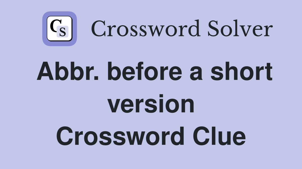 Abbr. before a short version Crossword Clue Answers Crossword Solver