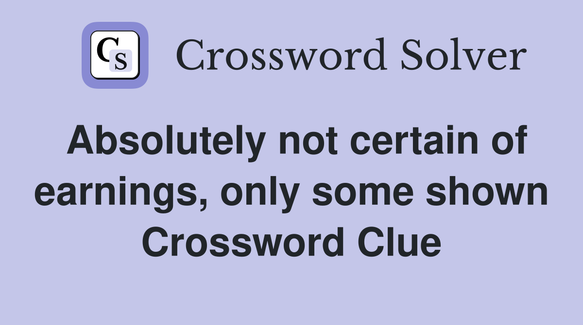 Absolutely not certain of earnings, only some shown Crossword Clue