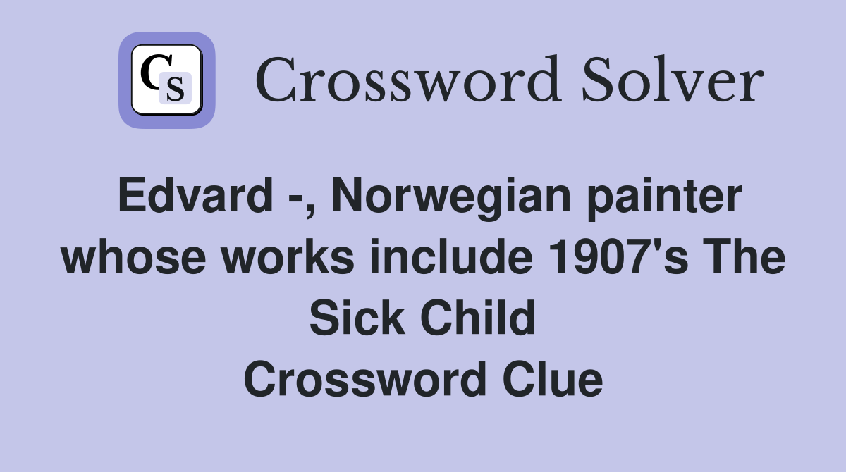 Edvard , Norwegian painter whose works include 1907's The Sick Child