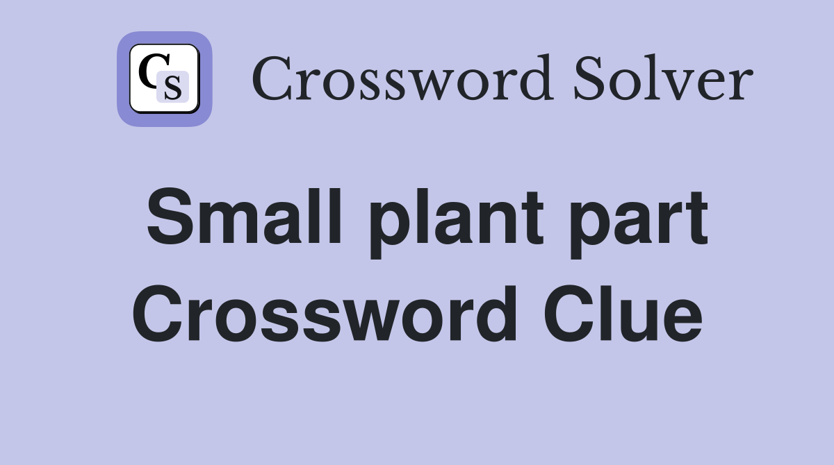 Find 6 possible solutions for the crossword clue small part with 4 to 9 letters. Solve your small part crossword puzzle fast &. Find the right answer to the crossword puzzle clue small part from the la times quick crossword. The crossword solver found 30 answers to small part, 5 letters crossword clue. See 7 possible solutions and email us.
