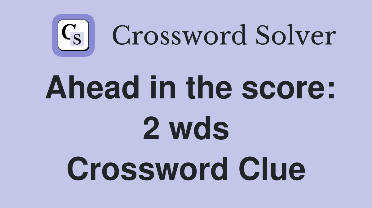 Ahead in the score 2 wds. Crossword Clue Answers Crossword Solver