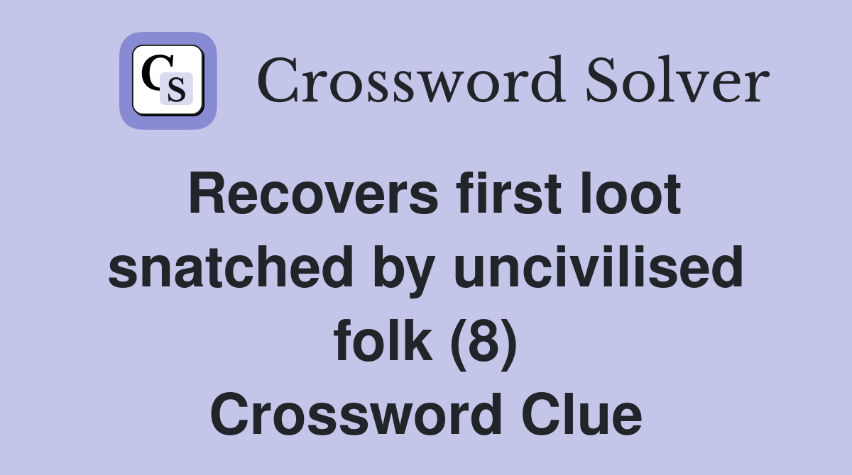 Recovers first loot snatched by uncivilised folk (8) Crossword Clue