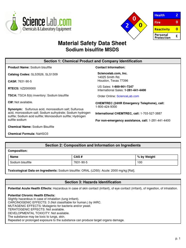 MSDS Natrium Bisulfit PDF Dangerous Goods Water