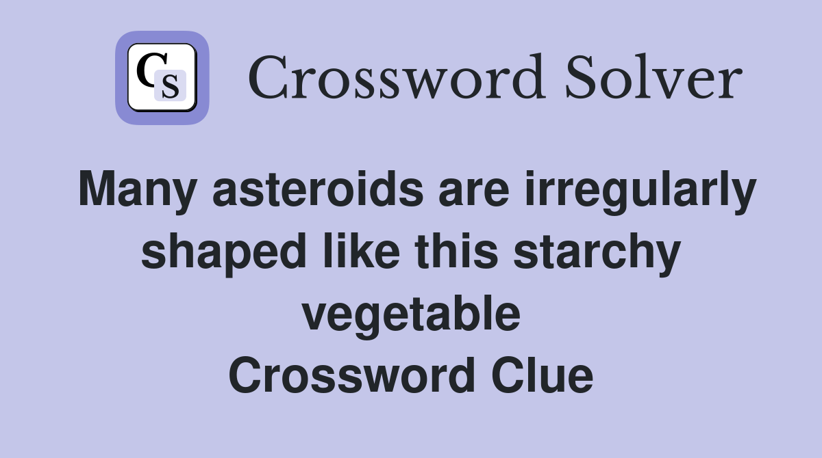 The crossword solver found 30 answers to starchy veggie, 5 letters crossword clue. The crossword solver finds answers to classic. We have found 40 possible answers for this clue in our. We have 3 solutions to the crossword puzzle starchy veggie. Today's crossword puzzle clue is a quick one: