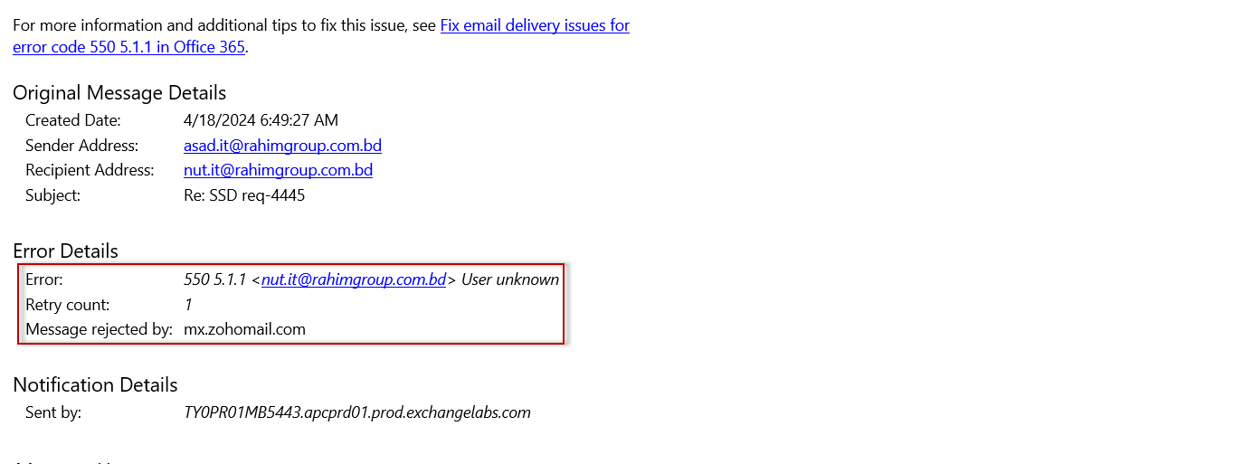 About the error code 550 5.1.1 Microsoft Q&A