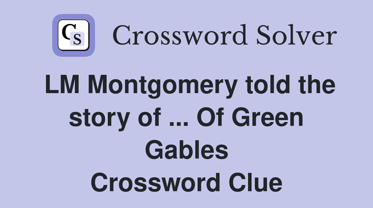 LM Montgomery told the story of Of Green Gables Crossword Clue