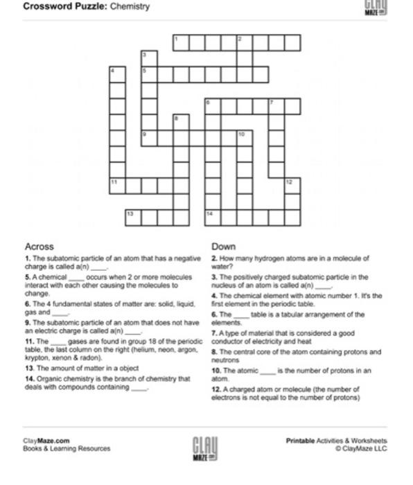 Solved Crossword Puzzle Chemistry Across 1. The subatomic