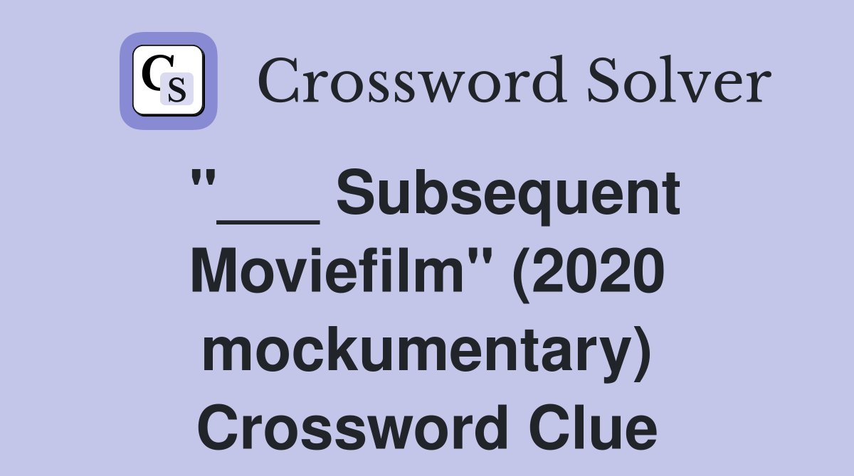 Subsequent Moviefilm" (2020 mockumentary) Crossword Clue Answers