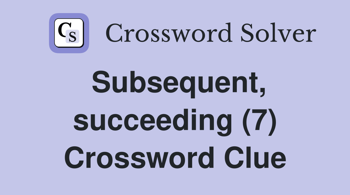 Subsequent, succeeding (7) Crossword Clue Answers Crossword Solver