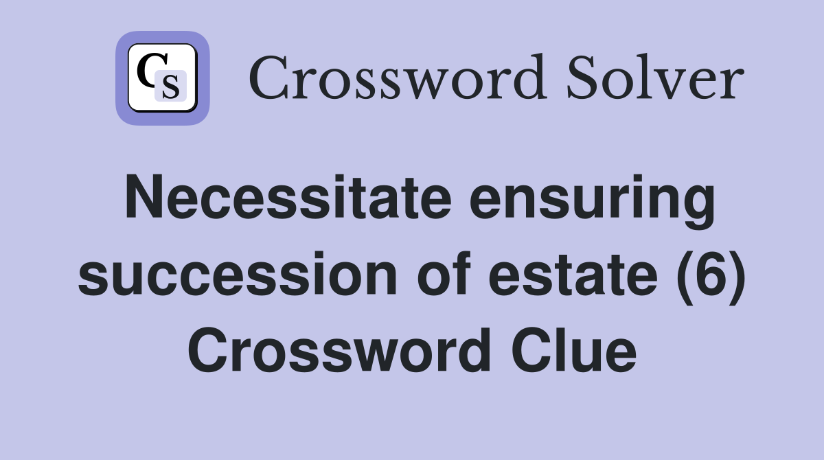 Necessitate ensuring succession of estate (6) Crossword Clue Answers
