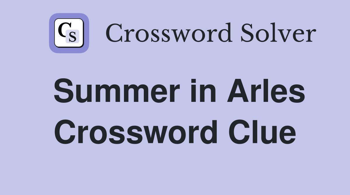 The crossword solver found 30 answers to summer in arles, 3 letters crossword clue. Summer in arles crossword clue. Here are the possible solutions for summer in arles clue. Summer month, in arles crossword clue answer is… →20. It was last seen in thomas joseph.