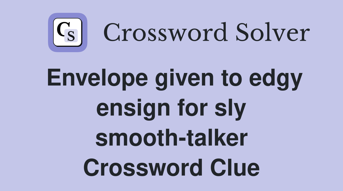 Envelope given to edgy ensign for sly smoothtalker Crossword Clue