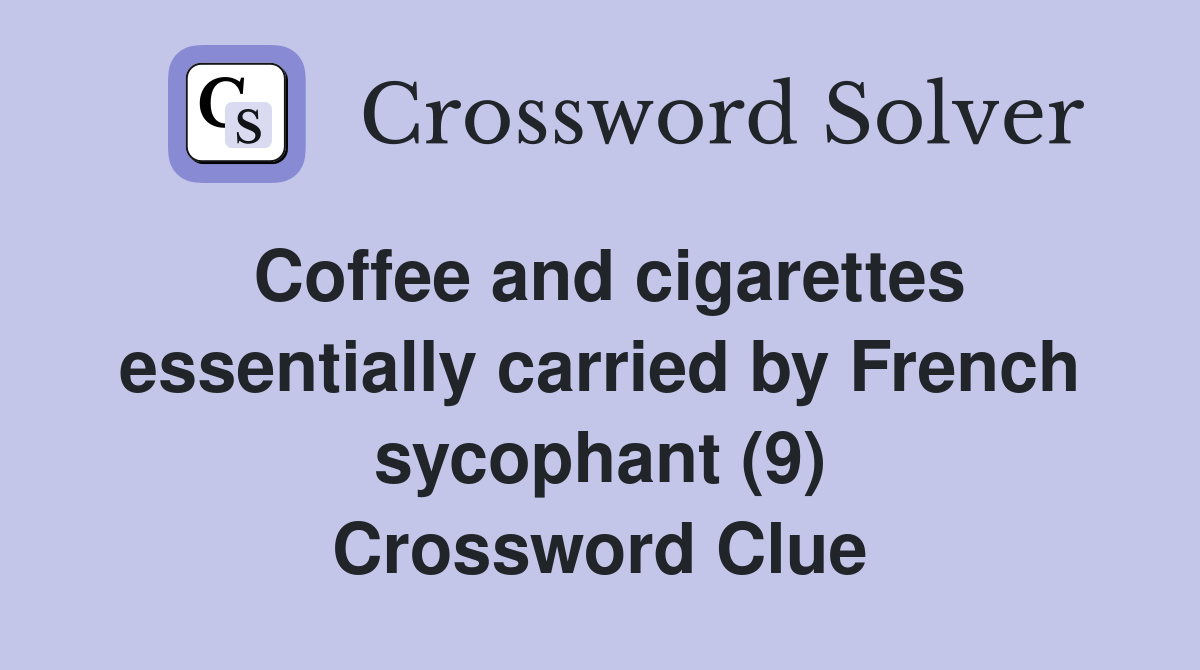 Find out what sycophant means and how to solve this crossword clue. See the list of possible. Find 14 possible solutions for the crossword clue sycophant from the daily telegraph quick. All synonyms & crossword answers with 4, 5, 7 & 9 letters for sycophant found in daily. The crossword solver found 57 answers to sycophant, 10 letters crossword clue.