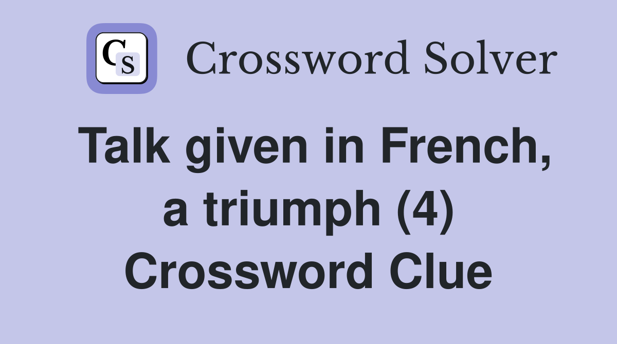 Talk given in French, a triumph (4) Crossword Clue Answers