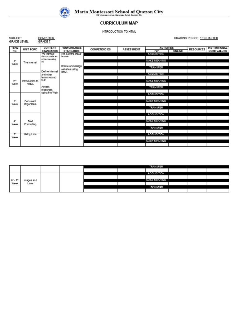 Blank Curriculum Map Template FREE DOWNLOAD Art curriculum