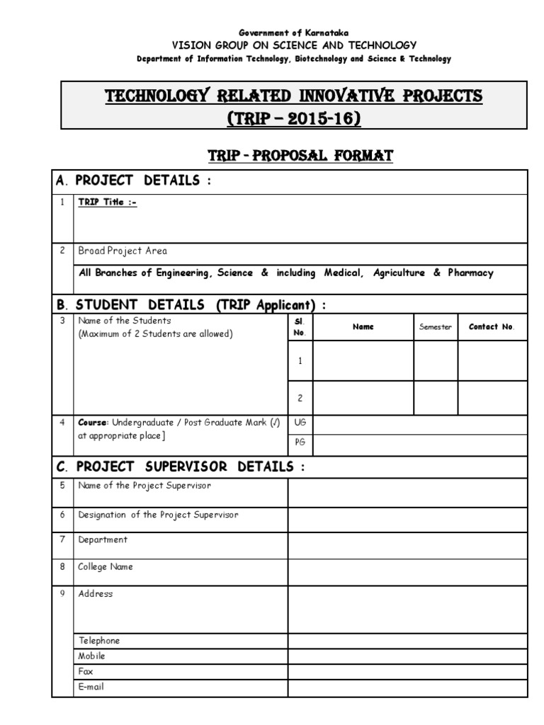 TRIP Proposal Format 201516 Technology Science And Technology