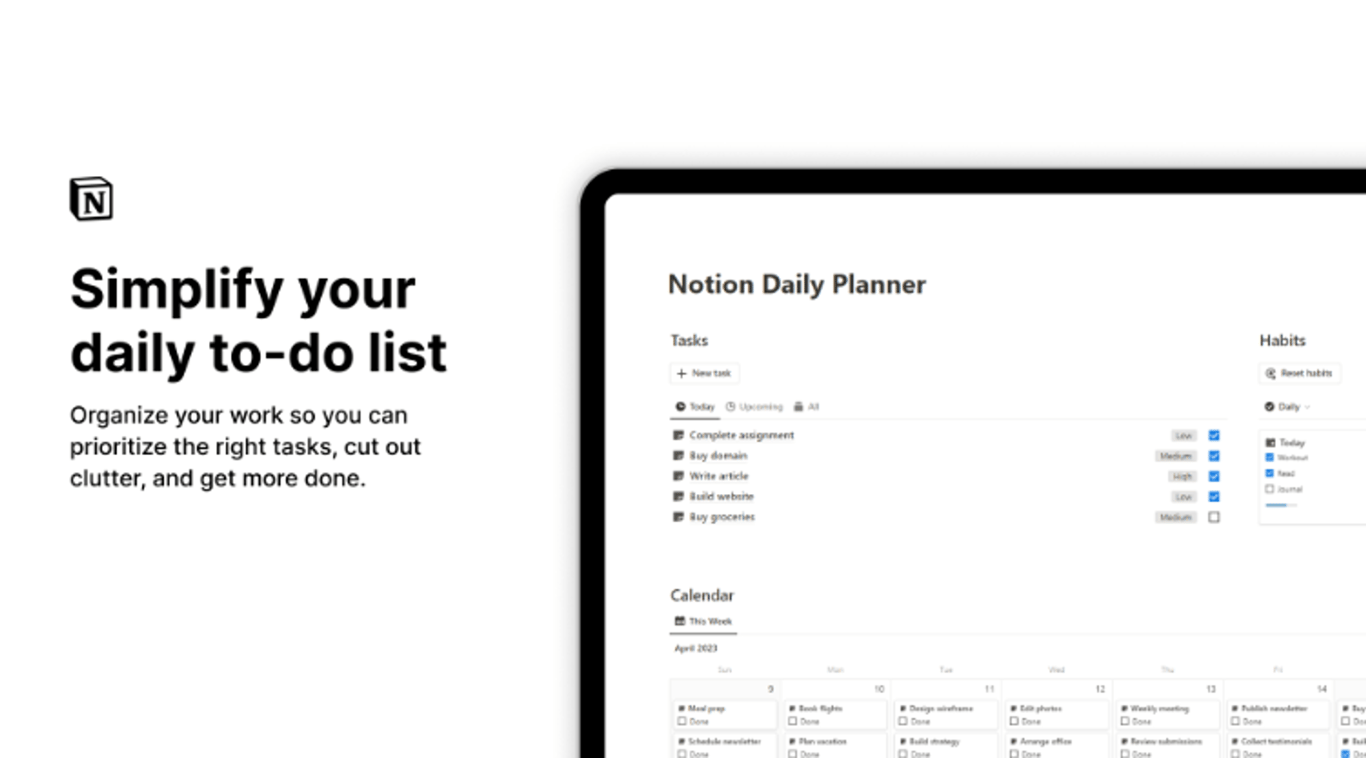 Notion Daily Planner Simplify Tasks & Track Progress