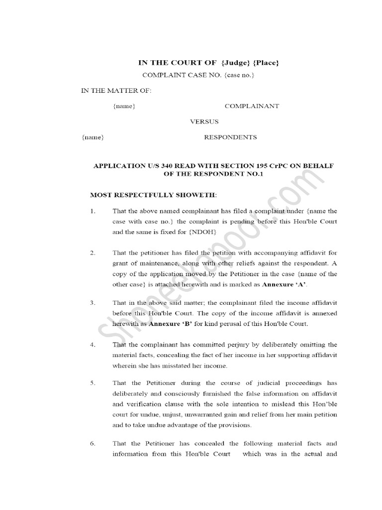 CRPC 340 Template Perjury Application Perjury Template PDF