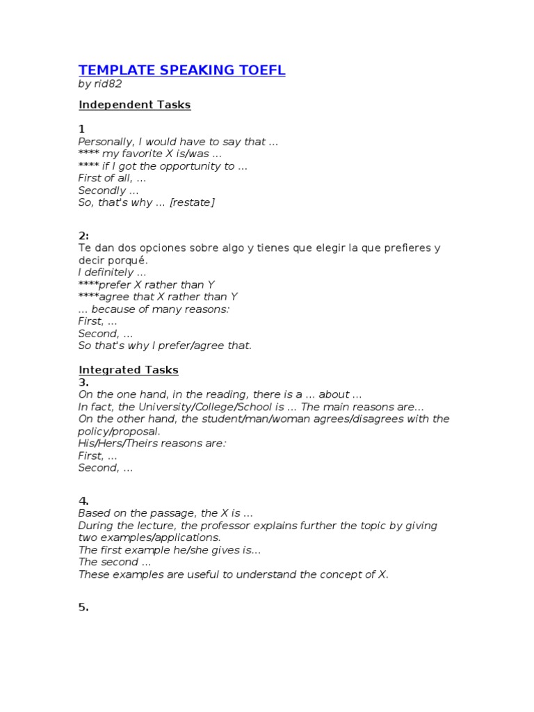 Templatetoefl Speaking Template - This article presents 9 helpful toefl speaking templates for you to use.