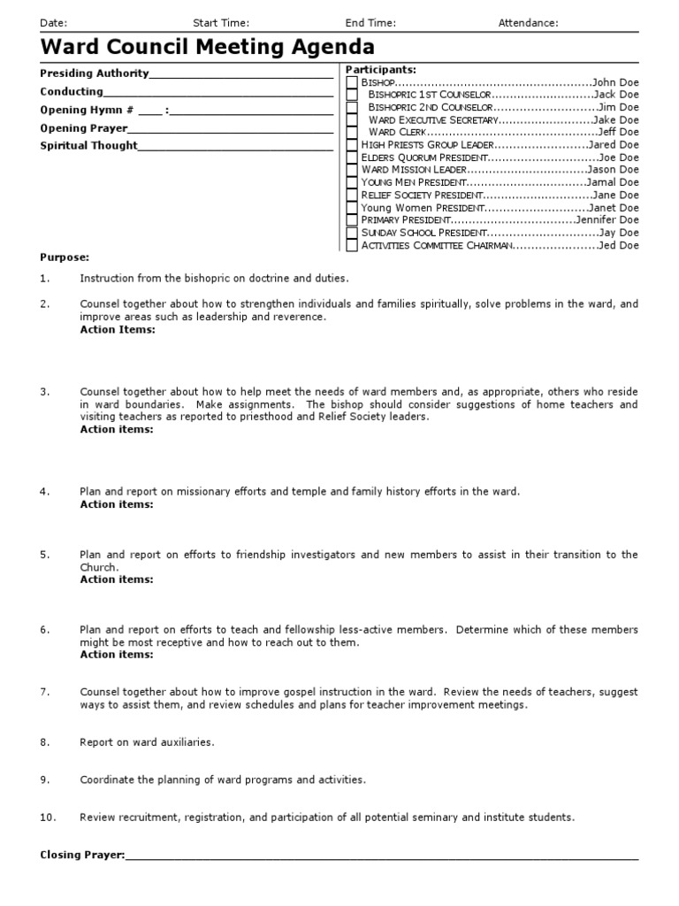 Our pec, welfare, and ward council meetings tend to run exactly the same,. To create an effective ward council agenda, consider the following steps: This coda doc is a.