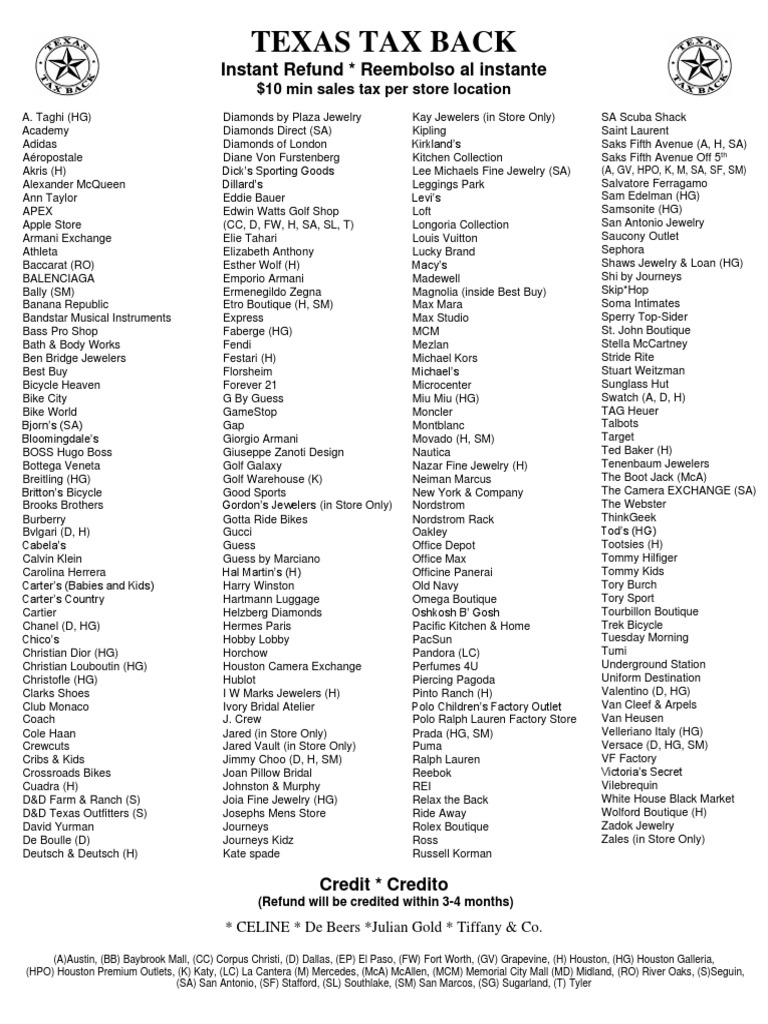 TEXAS TAX BACK Retailers PDF Companies Of The United States