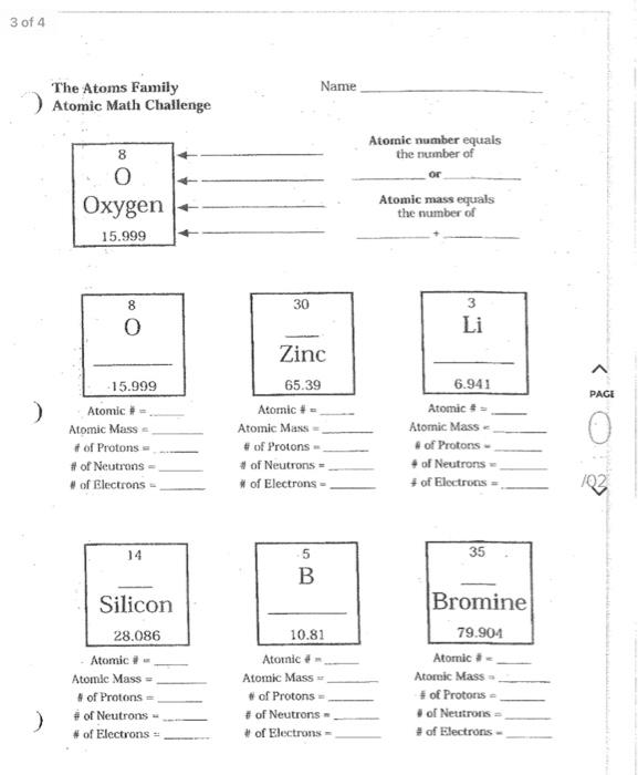 Worksheets Are Equals O Zinc, The Atoms Family Atomic Math Challenge,.