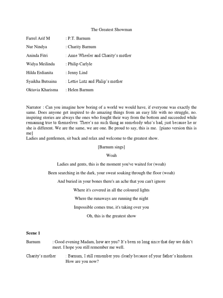 This is the greatest show! Barnum, founder of the circus that became the famous. ♪ ♪ we light it up, we won't come down ♪ group: Read, review and discuss the the greatest showman script in pdf format on scripts.com The story of american showman p.t.