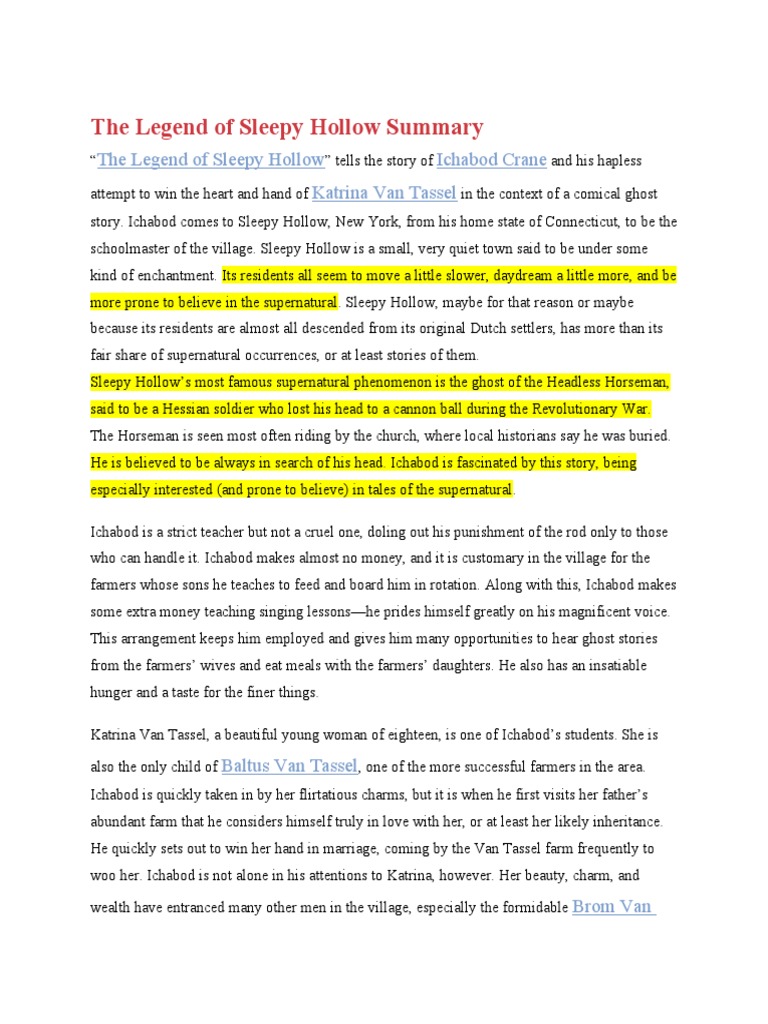 From the listless repose of the place, and the peculiar character of its inhabitants, who are descendants from the original dutch. Because of this strange peaceful feeling, the valley is called “sleepy hollow”. Everyone who lives there always feels sleepy. The legend of sleepy hollow by washington irving the headless horseman: The legend of sleepy hollow is a short story.