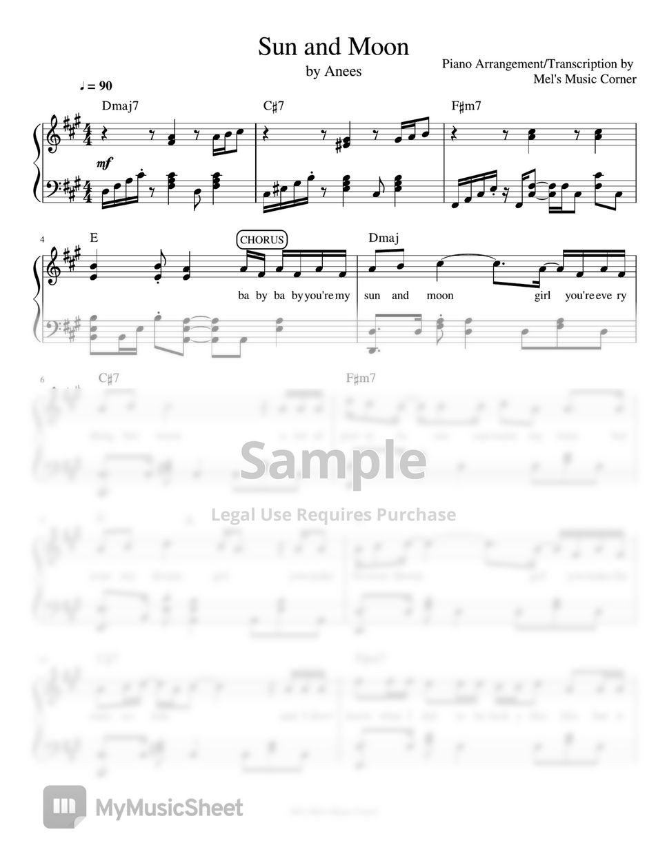 Anees Sun and Moon (piano sheet music) 악보 by Mel's Music Corner