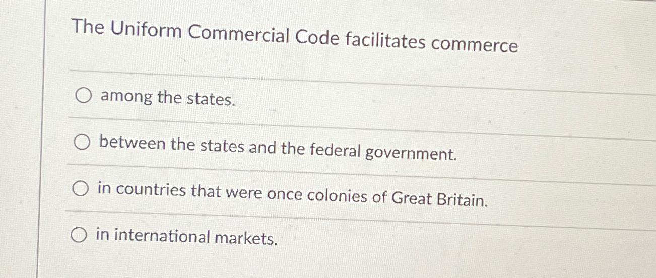 Solved The Uniform Commercial Code facilitates commerceamong