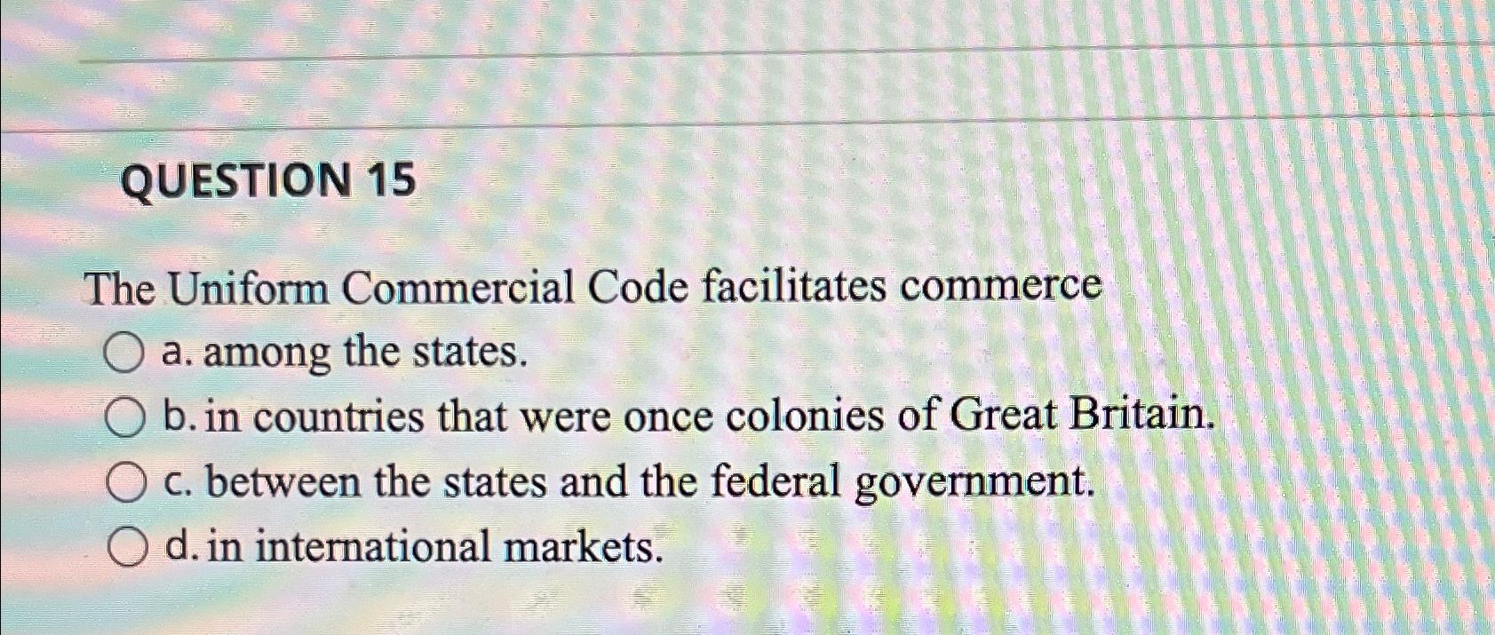 Solved QUESTION 15The Uniform Commercial Code facilitates