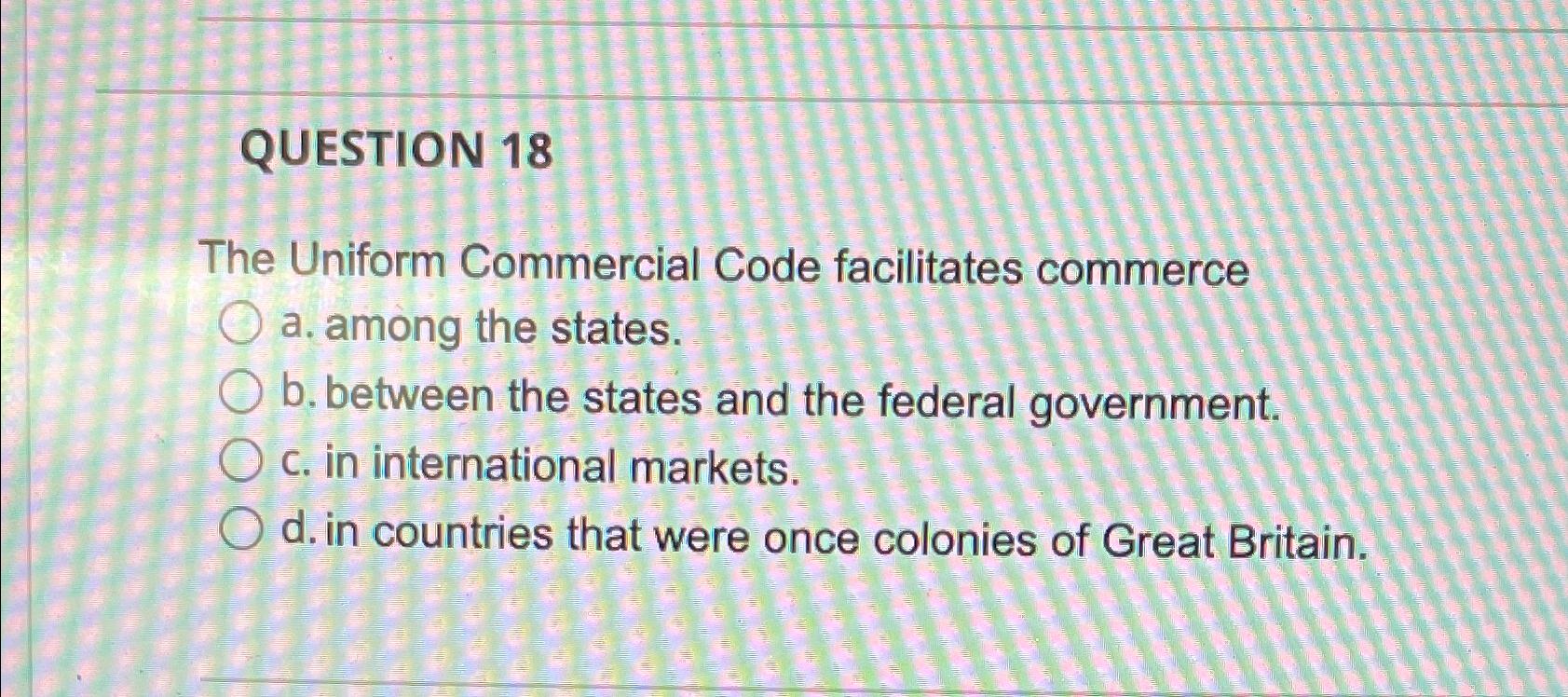 Solved QUESTION 18The Uniform Commercial Code facilitates
