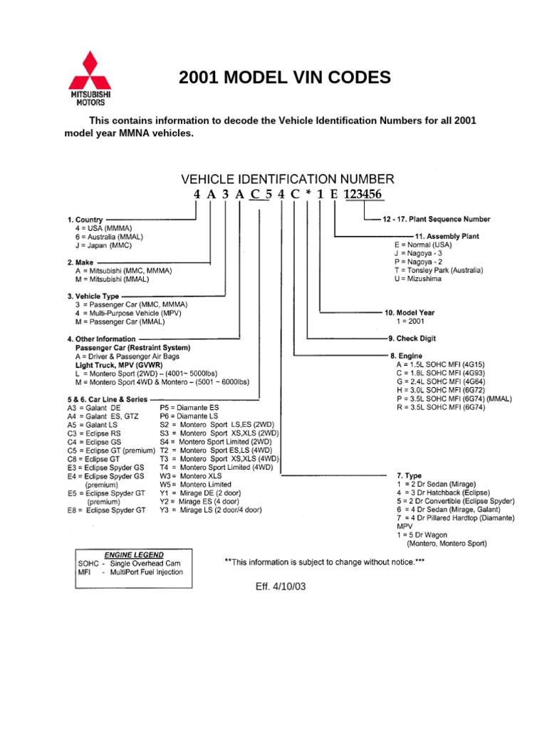 Vehicle Identification Numbers for All 2001 PDF
