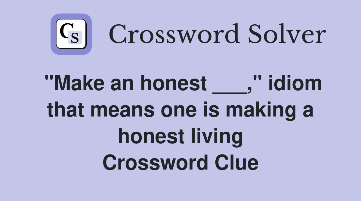 Today's crossword puzzle clue is a quick one: We will try to find the right answer to. We have found 40 possible answers for this clue in our database. The crossword clue to be honest. with 13 letters was last seen on the april 15,. The crossword solver found 30 answers to to be honest., 7 letters crossword clue.